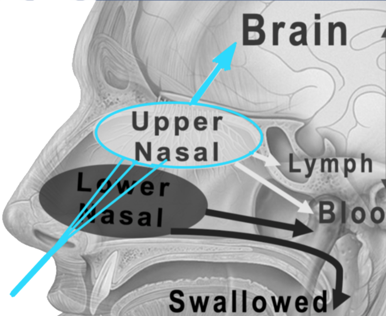 - Results in rapid delivery to the brain along both the olfactory and trigeminal nerves.